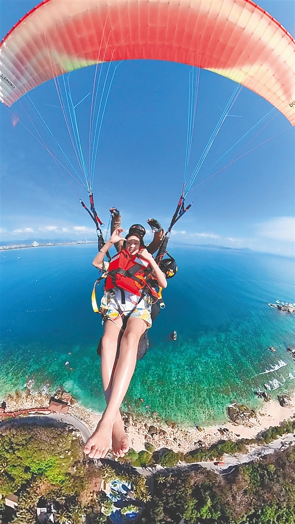 近日,游客在三亚蜈支洲岛旅游区体验滑翔伞项目。受访者供图