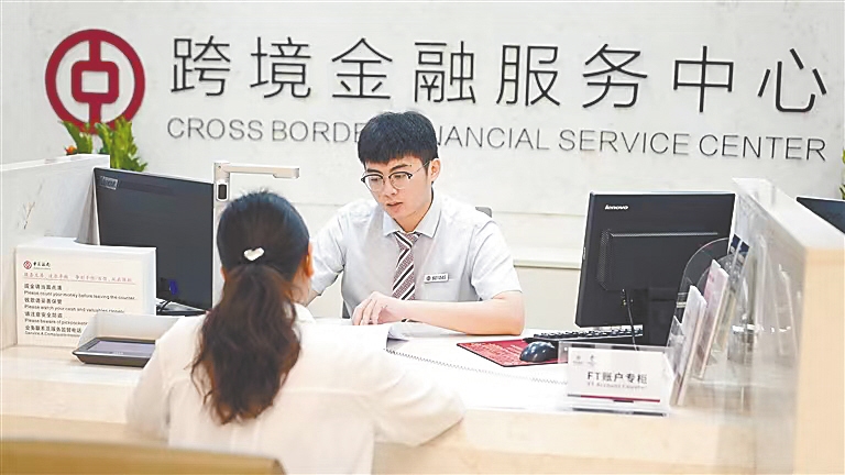 银行工作人员在为企业客户办理跨境支付业务。中国银行海南省分行供图