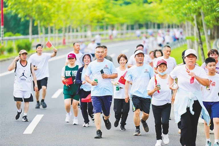 4月26日,2025海南工会职工健步走(琼中)活动暨第十届琼中黎族苗族自治县职工“最美追梦人”健步走活动在营根镇举行,职工群众享受运动乐趣。