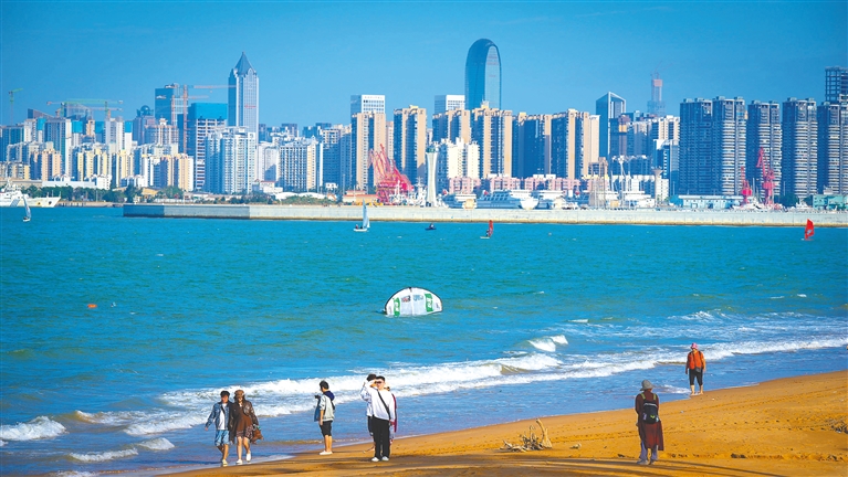 时值冬日,北方冰天雪地,海南却暖意融融。近日,海口城市海岸阳光明媚,海风轻拂,沙滩上游客享受冬日暖阳,海面上帆船爱好者体验冬日扬帆的乐趣。